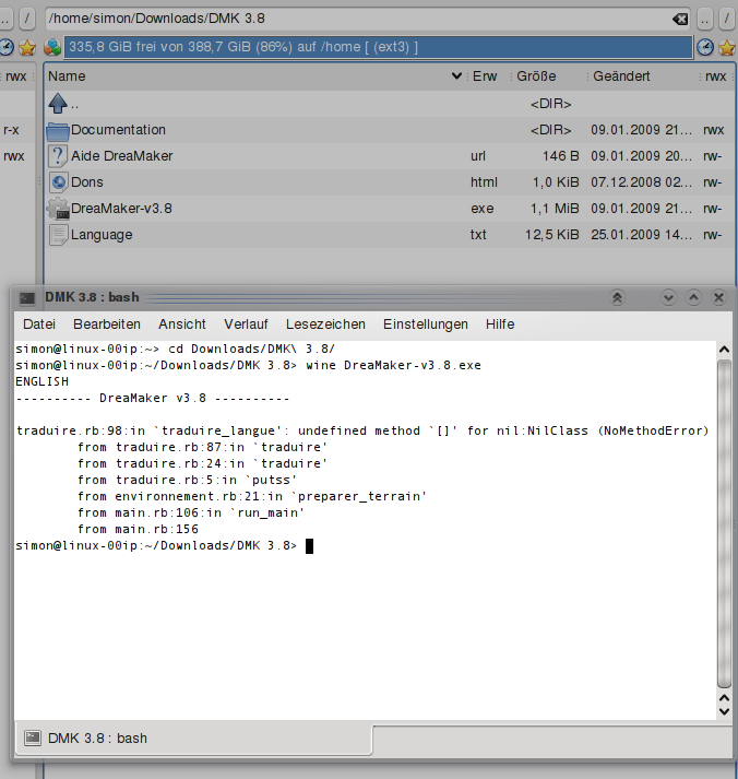 ![]() Edit: I understand that DreaMaker is not designed for Linux, however I don't understand why it doesn't work ^^