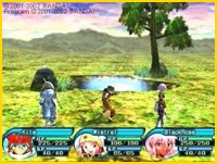 Durch den MMORPG-Charakter von .hack wird natürlich auch die Auswahl einzelner Aktionen beeinflusst. Somit habt ihr als Spieler von Kite auch nur auf sein Inventar unbeschränkten Zugriff. Ihr könnt zwar euren Mitstreitern Inventargegenstände schenken und ihnen sogar sagen, dass sie sie anlegen sollen, aber letztendlich sind diese Gegenstände dann deren gegenstände geworden und nicht mehr im Besitz des Spielers. Zurückgegen ist also nicht mehr. Jeder Charakter besitzt ein Limit von maximal 40 verschiedenen Arten von Gegenständen die er tragen darf und ein Limit von 99 pro ein und dem selben Gegenstand. Da bleiben Platzprobleme nicht aus. Hier hilft der Efl Haven weiter, bei ihm kann man momentan nicht benötigte Utensilien abgeben und sie später wieder abholen. Das verschafft einem Luft, denn man findet in .hack eine Menge Truhen mit allerlei Kram, den man überdies auch dann und wann mal verkaufen sollte, ist das doch so ziemlich die einzige Geldquelle die man hier hat. Ach ja, nochmal zum Thema Truhen. Von diesen gibt es im Spiel insgesamt zwei Arten, einmal gelbe Truhen und einmal blaue. Die gelben sind ganz gewöhnliche Truhen, die blauen hingegen sind mit einer Falle gespickt, die die Truhe explodieren lässt, den Charakter mit einem Fluch belegt oder ihm sogar Erfahrungspunkte rauben kann, wenn er sie einfach so öffnet. Um diese Art Truhen zu öffnen bedarf es eines besonderen Gegenstandes, den man in den Läden ganz normal kaufen kann. Diese bieten dem Spieler dann auch noch ganz andere Dinge an. Abgesehen von den ganz regulären Heiltränken und diversen Gegengiftchen kann man hier auch noch viele Statusverbessernde Gegenstände, sowie Teleportationszauber und andere Gegenstände finden, die z.B. die Karte, die man überall in The World einblenden kann, vollkommen aufgedeckt wird. Ansonsten könnt ihr euren Mitstreitern auch direkt Kommandos geben, was besonders in Kämpfen von Bedeutung ist, da besonders später im Spiel immer mehr Gegner auftauchen, die nicht einfach nur dadurch besiegt werden können indem man wie wild auf ihnen rumhackt. Manche sind nur durch Magie verwundbar, andere laufen vor einem weg, wiederum andere beleben tote Monster wieder, was bedeutet, dass man den Mitstreitern natürlich erstmal klarmachen muss, dass es erstmal gilt diese Gegner zu bekämpfen, soll sich der Kampf nicht endlos hinziehen.